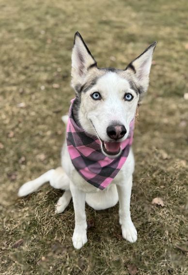Luna is a four-year-old Husky with the most striking blue eyes and a heart that belongs entirely to people. She was adopted from us years ago and recently returned through no fault of her own—she simply prefers not to share her space with other dogs.